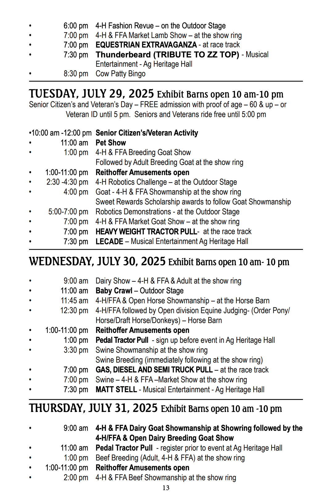 The schedule for the 2025 Garrett County Fair was recently released. Here is the full schedule for the entire week: