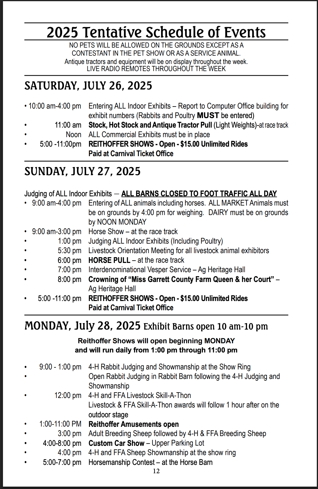 Garrett County Fair 2025 Schedule